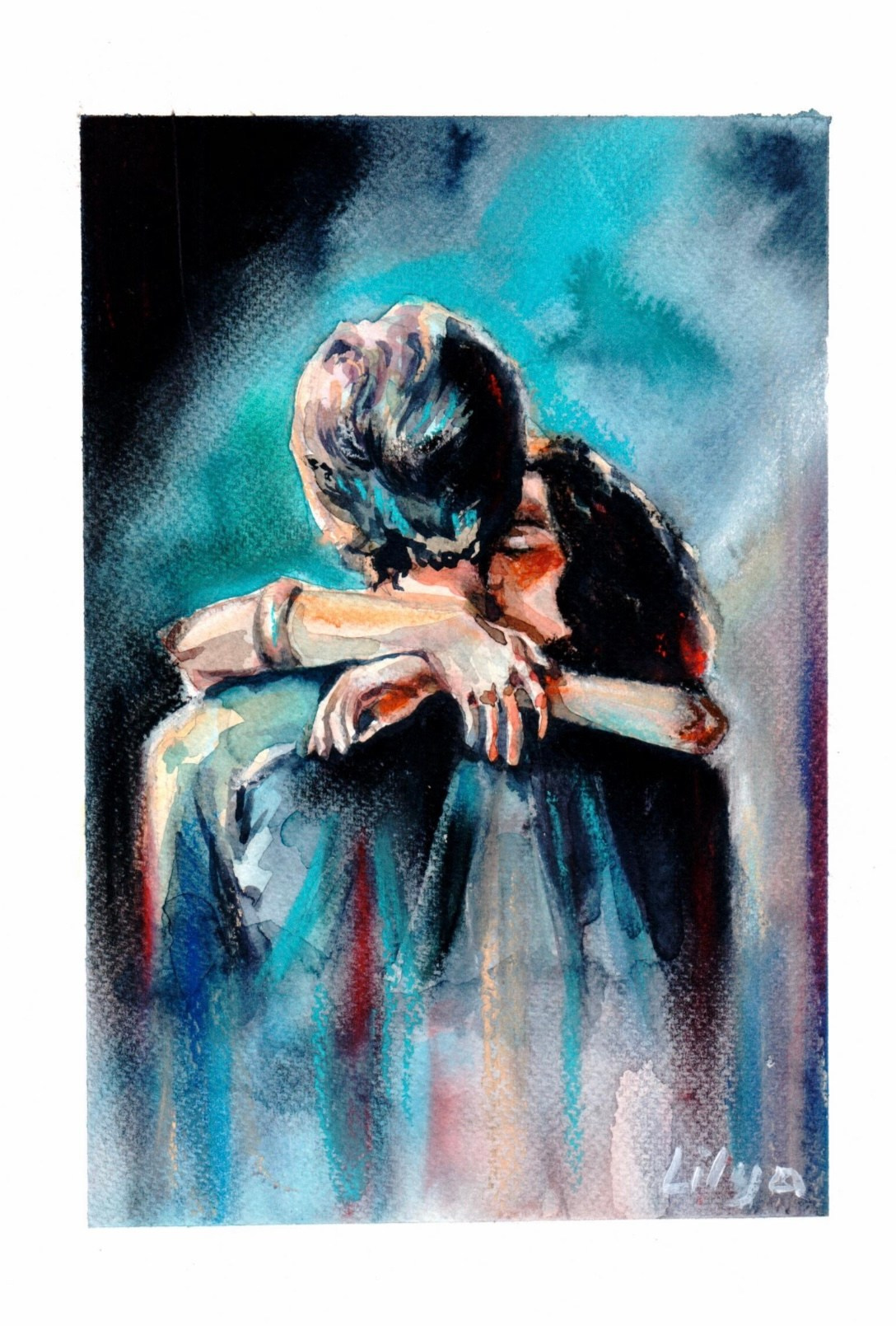 "Объятия", Акварель, пастель, бумага. Размер по запросу. 2019